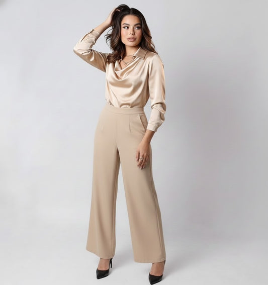 Elevate your wardrobe with this long-sleeved satin shirt, where a subtle sheen and swing collar...