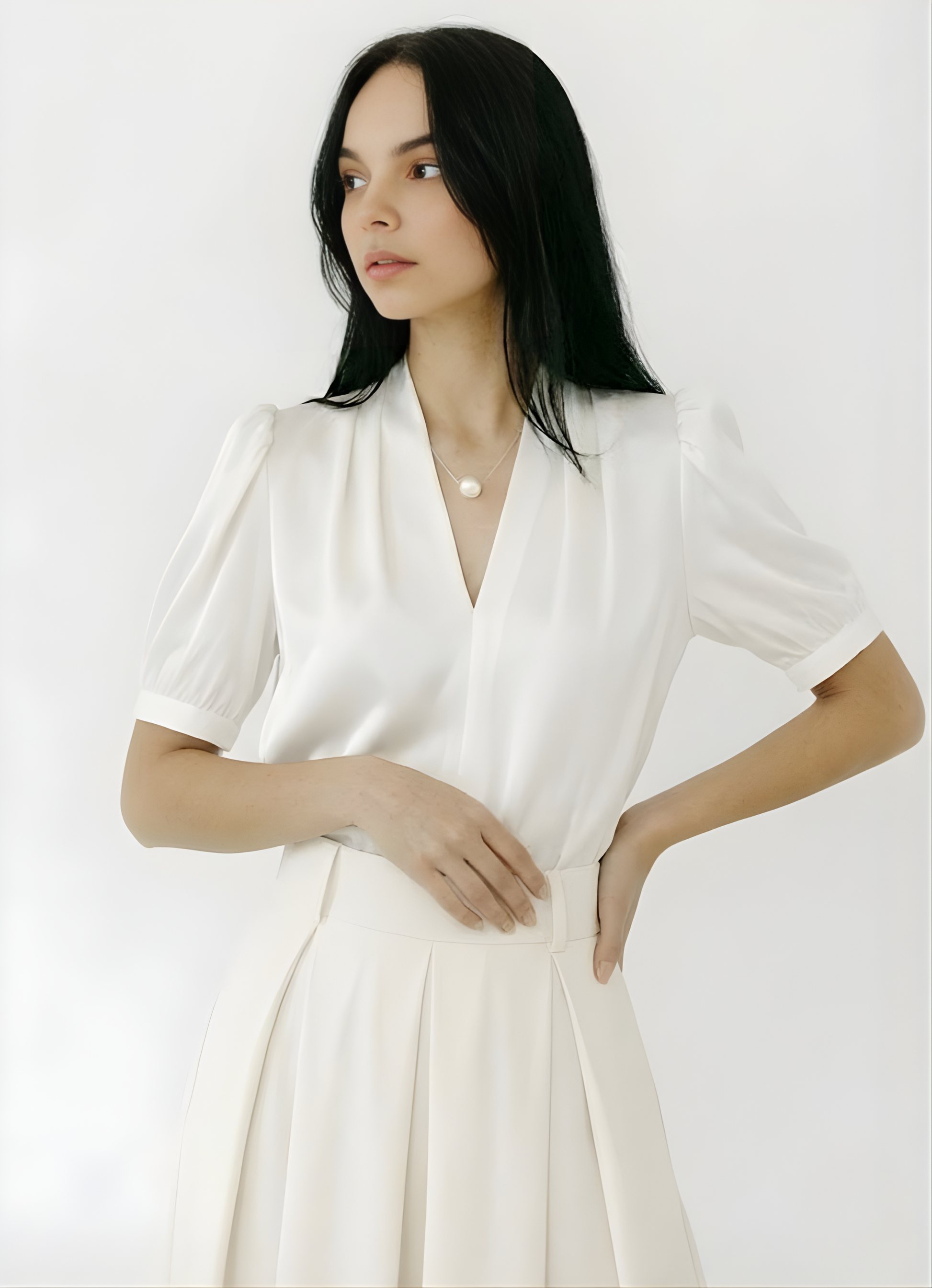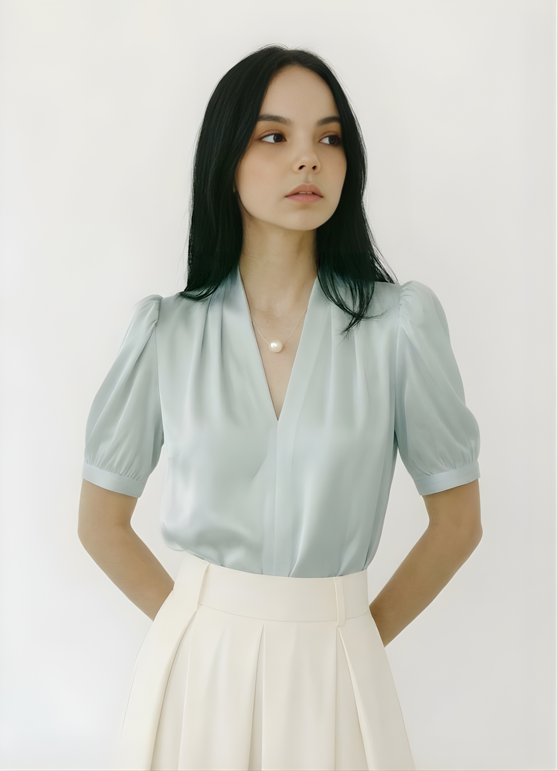 Versatile V-neckline that elongates the neck and pairs beautifully with necklaces for work, brunch, or casual evenings.