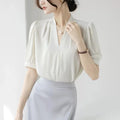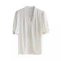 2025 Fashion Summer Short Sleeve V-Neck Women Blouse White Blouse Shirt Women Tops Blouses Shirts Blusas De Mujer Camisas P856
