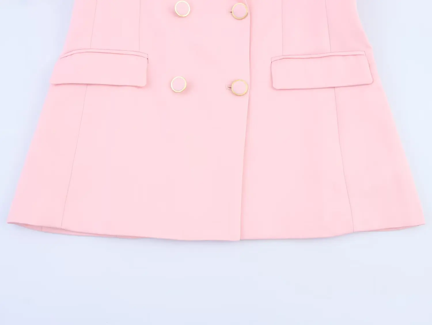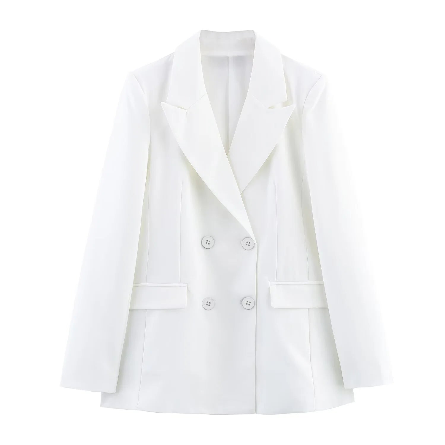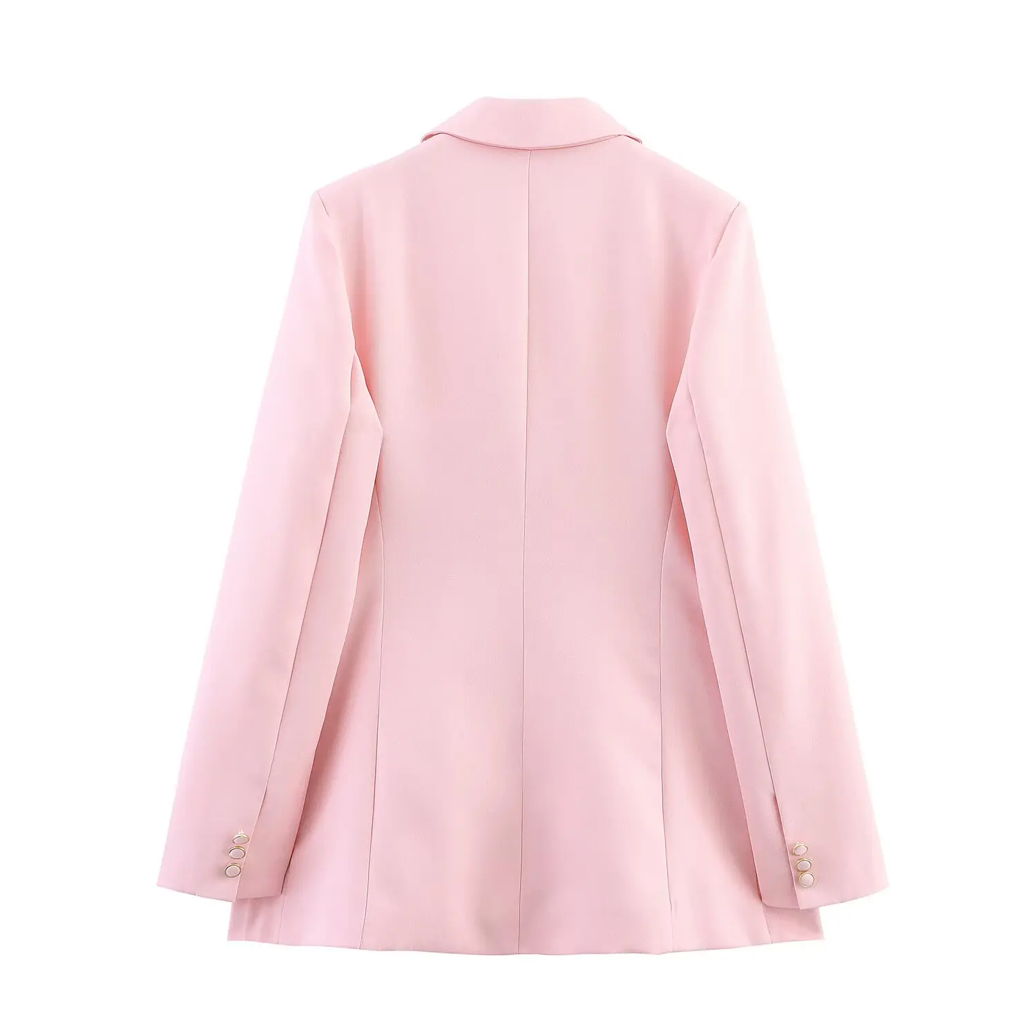 2025 new summer women's casual fashion commuter with shoulder pads double-breasted suit jacket with mid-waist trousers