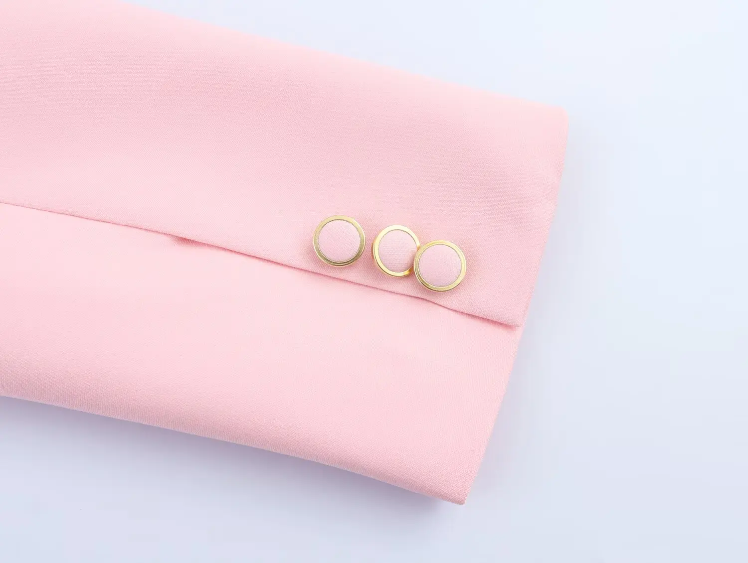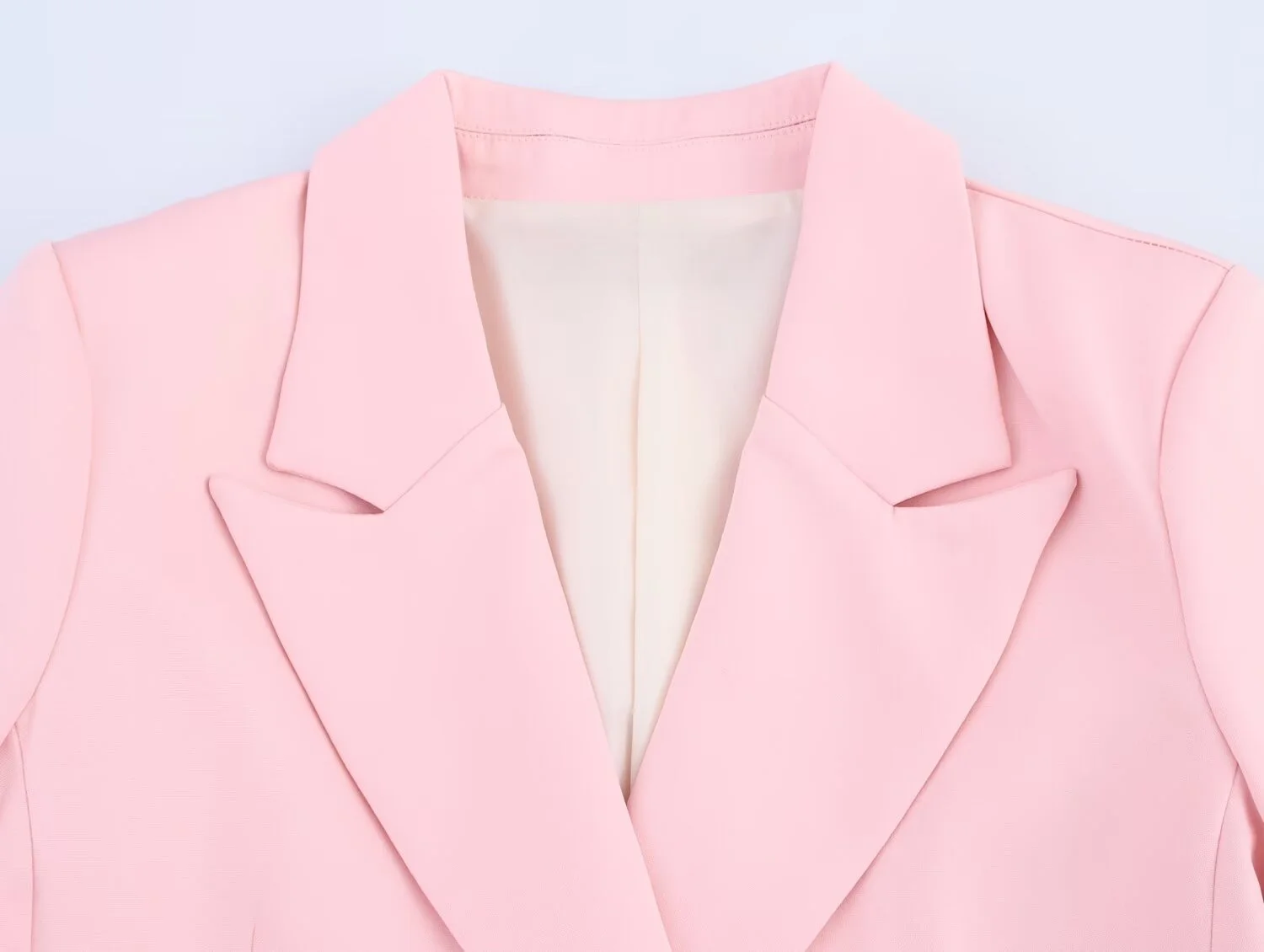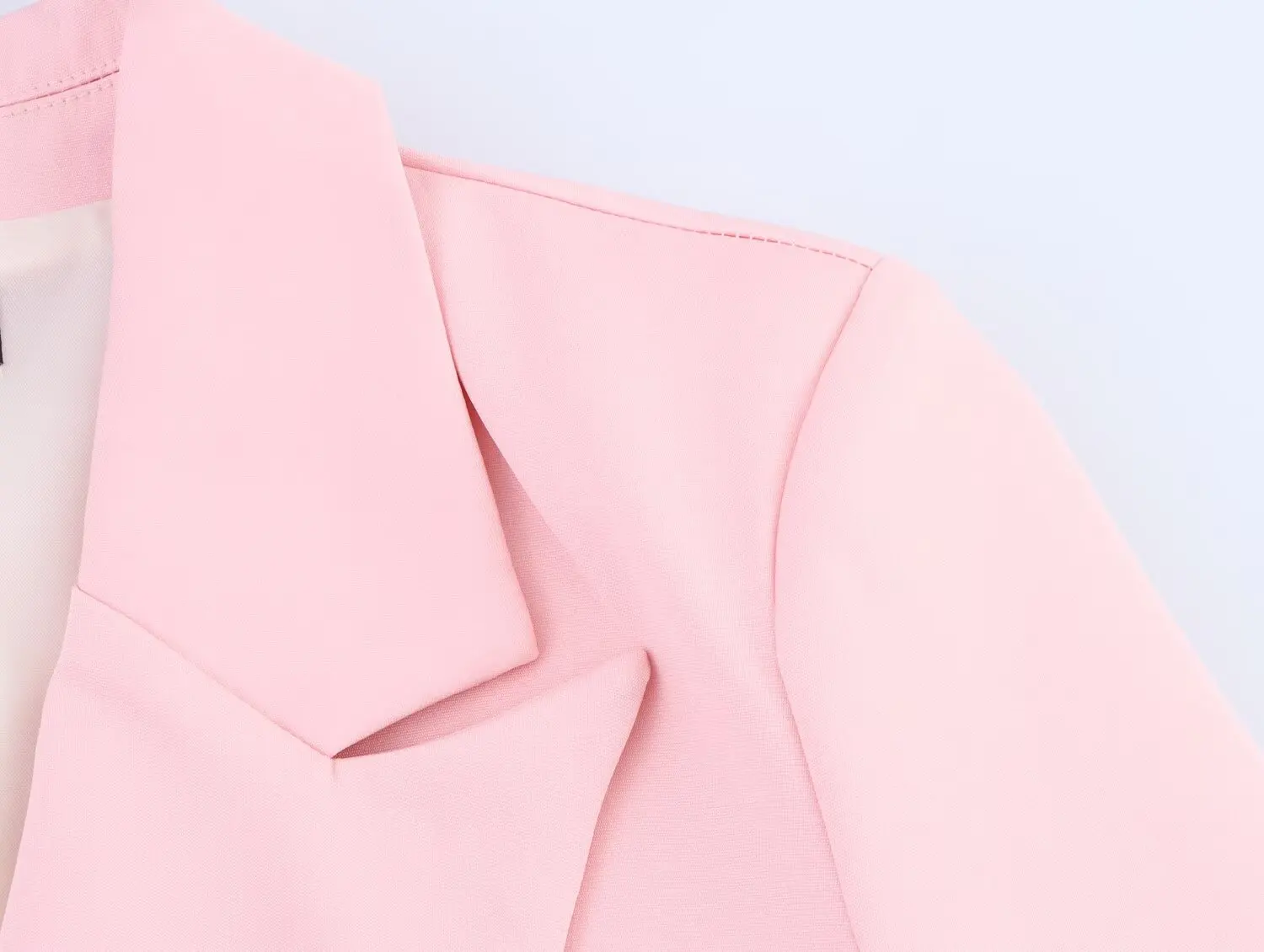 2025 new summer women's casual fashion commuter with shoulder pads double-breasted suit jacket with mid-waist trousers