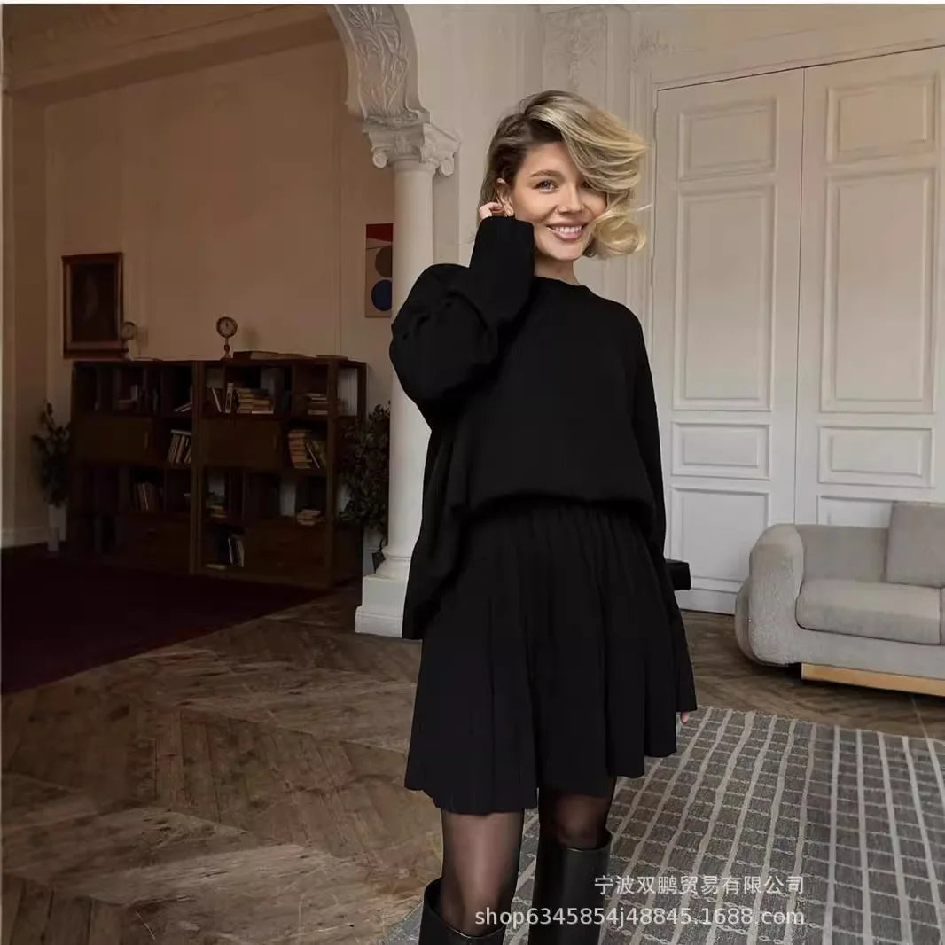 Autumn Solid Color O-neck Sweater Dress Sets Women's Clothing 2024 New Long Sleeves Fishion Style Loose Knitted Short Skirt Set