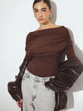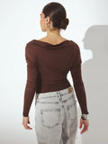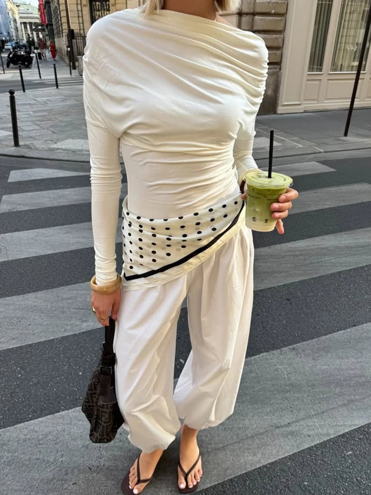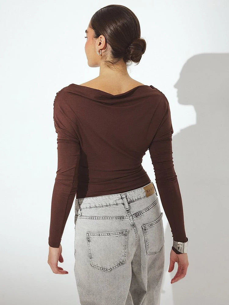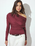 Blifanbo Long Sleeve Fashion T-shirt Top Women Slash Neck Fashion Solid Ruched Slim Female T-shirt Top Elegant Streetwear Autumn
