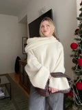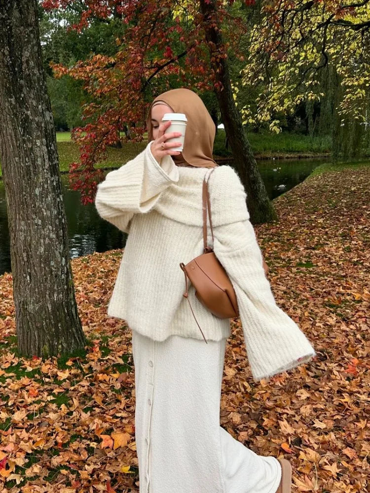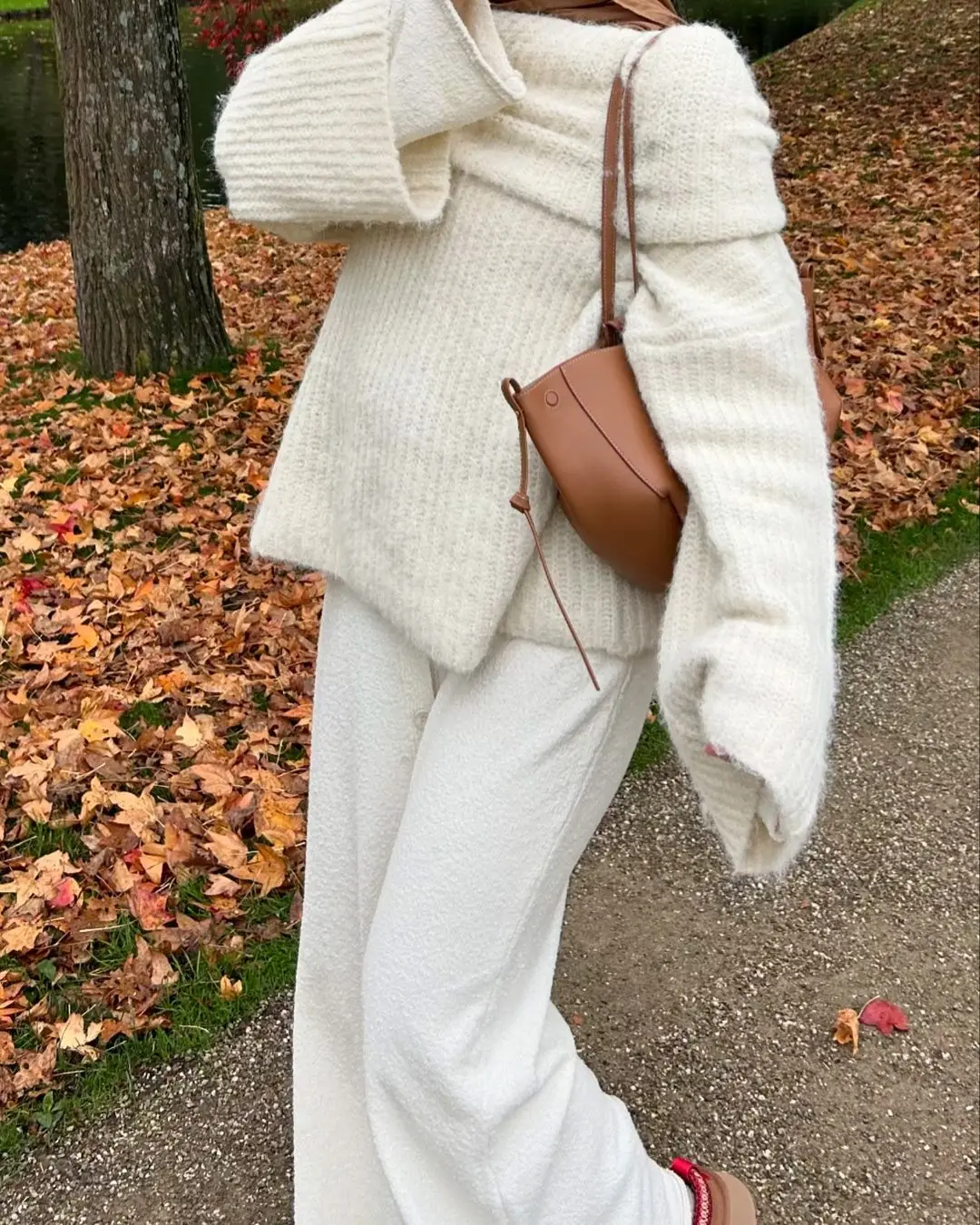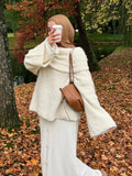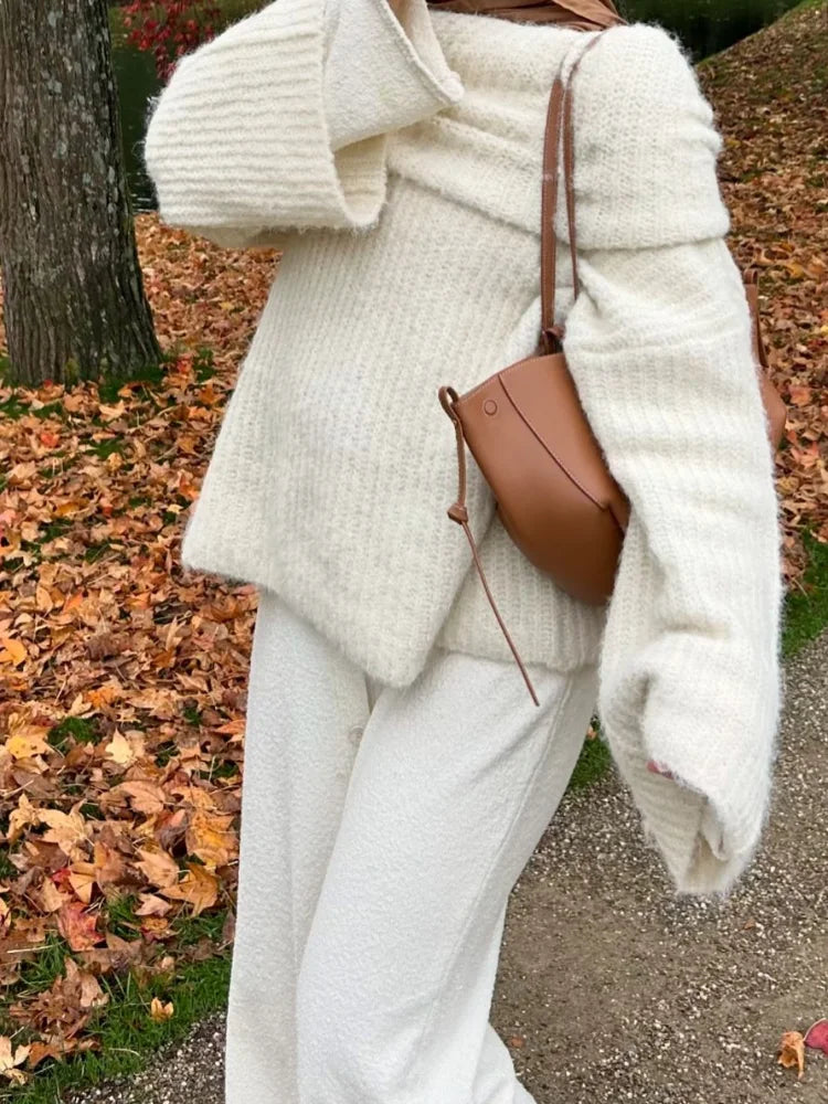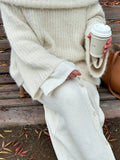 Casual Knitted Off-shoulder Sweater for Women Loose Trumpet Sleeve Loose White Solid Pullover Chic Highstreet Winter Streetwear