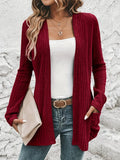 Elegant open front solid cardigan, long sleeve double pocket cardigan, suitable for spring and autumn, women's clothing