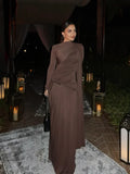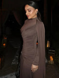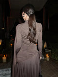 Elegant Women Pleated Irregular Patchwork Maxi Dress Chic Long Sleeve High Neack Dresses 2025 Summer Turtleneck Party Prom Gowns