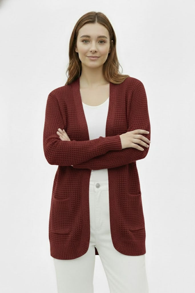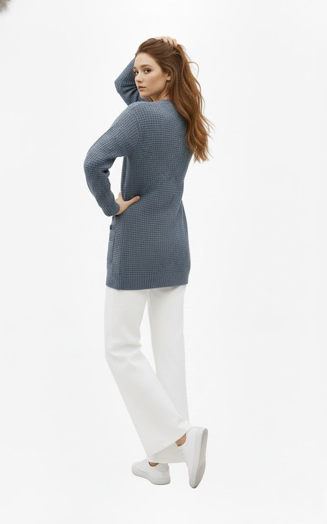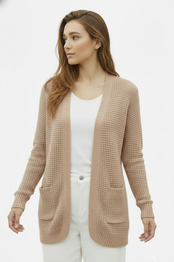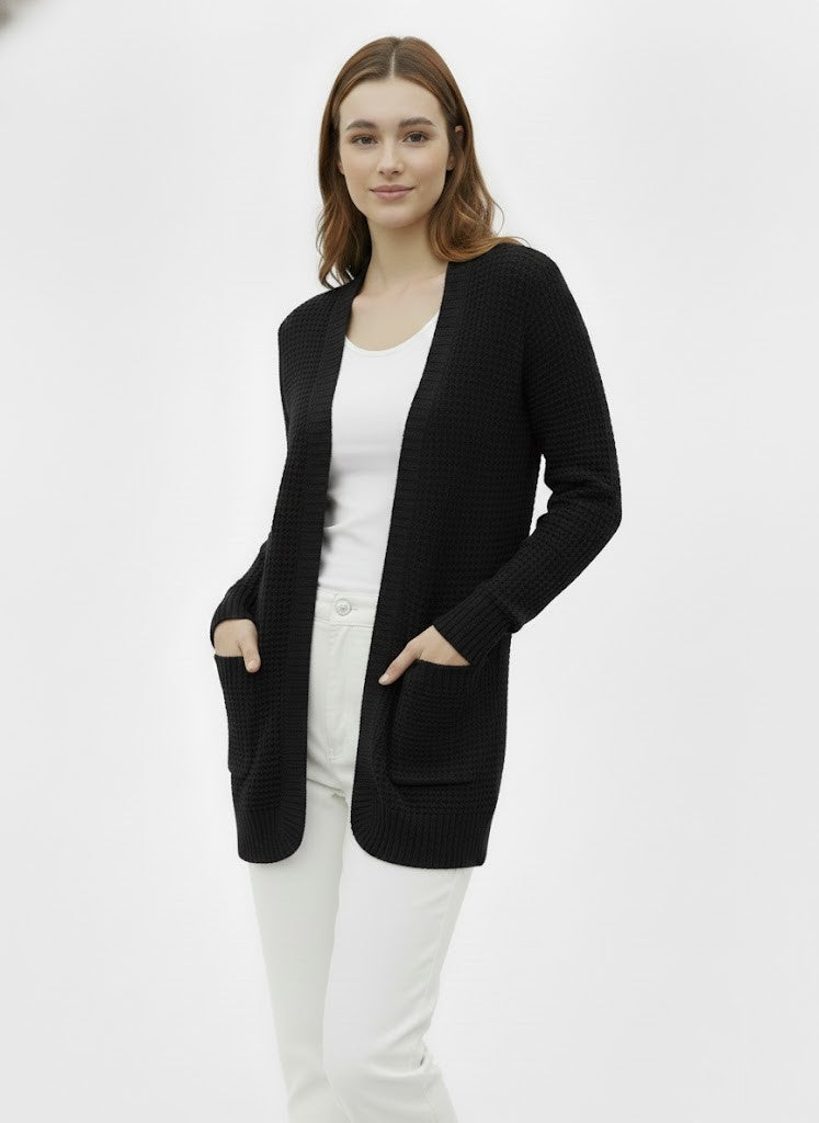 Long, loose fit that drapes beautifully over the body, perfect for layering over tees, blouses, and dresses in autumn and winter.