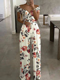 Floral Print Jumpsuit Women Summer Y2k Straight Party Overalls Y2k Club Romper Elegant Off Shoulder Sleeveless Party Jumpsuits