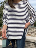 Korean Fashion Women Striped Blouse ZANZEA 2023 Autumn Long Sleeve Casual Loose Tops Female O Neck Party Blusas Work Shirt Mujer