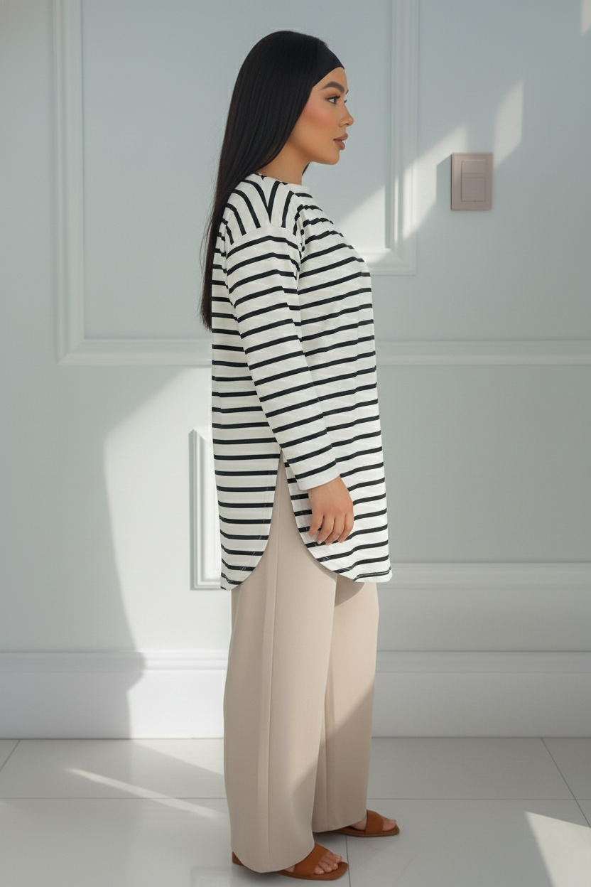 Timeless striped design that instantly elevates jeans, shorts, or tailored pants for a polished yet easygoing outfit.