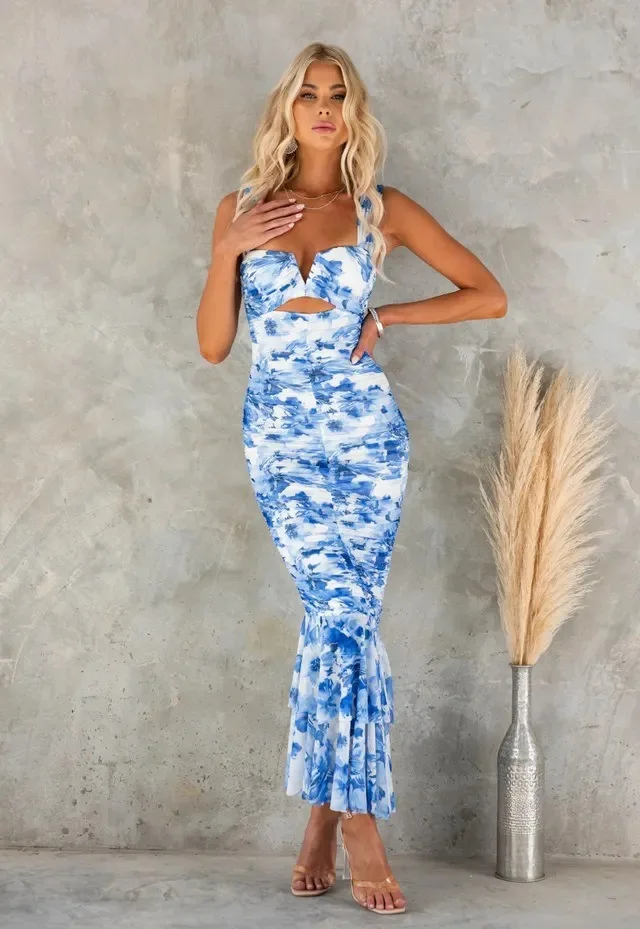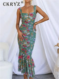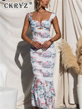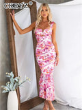 Ladies Summer Floral Print New Fashion Evening Party Dress Women Sleeveless Backless Bodycon Long Dresses Birthday Clubwear 2025