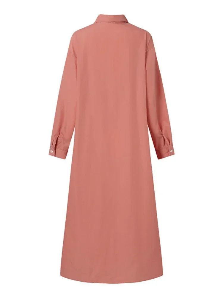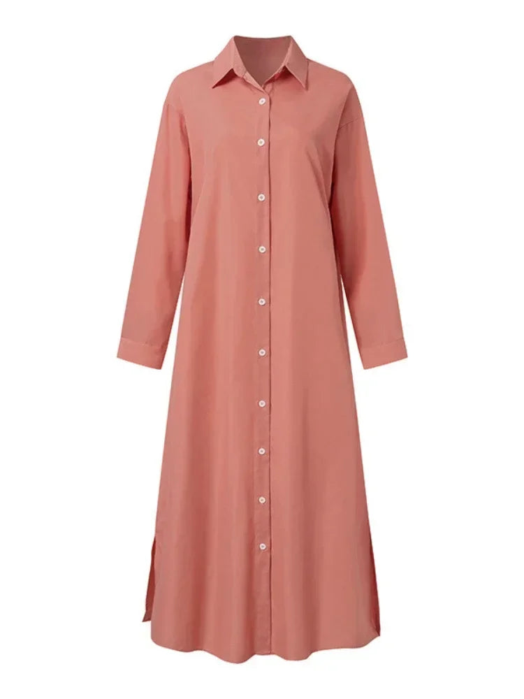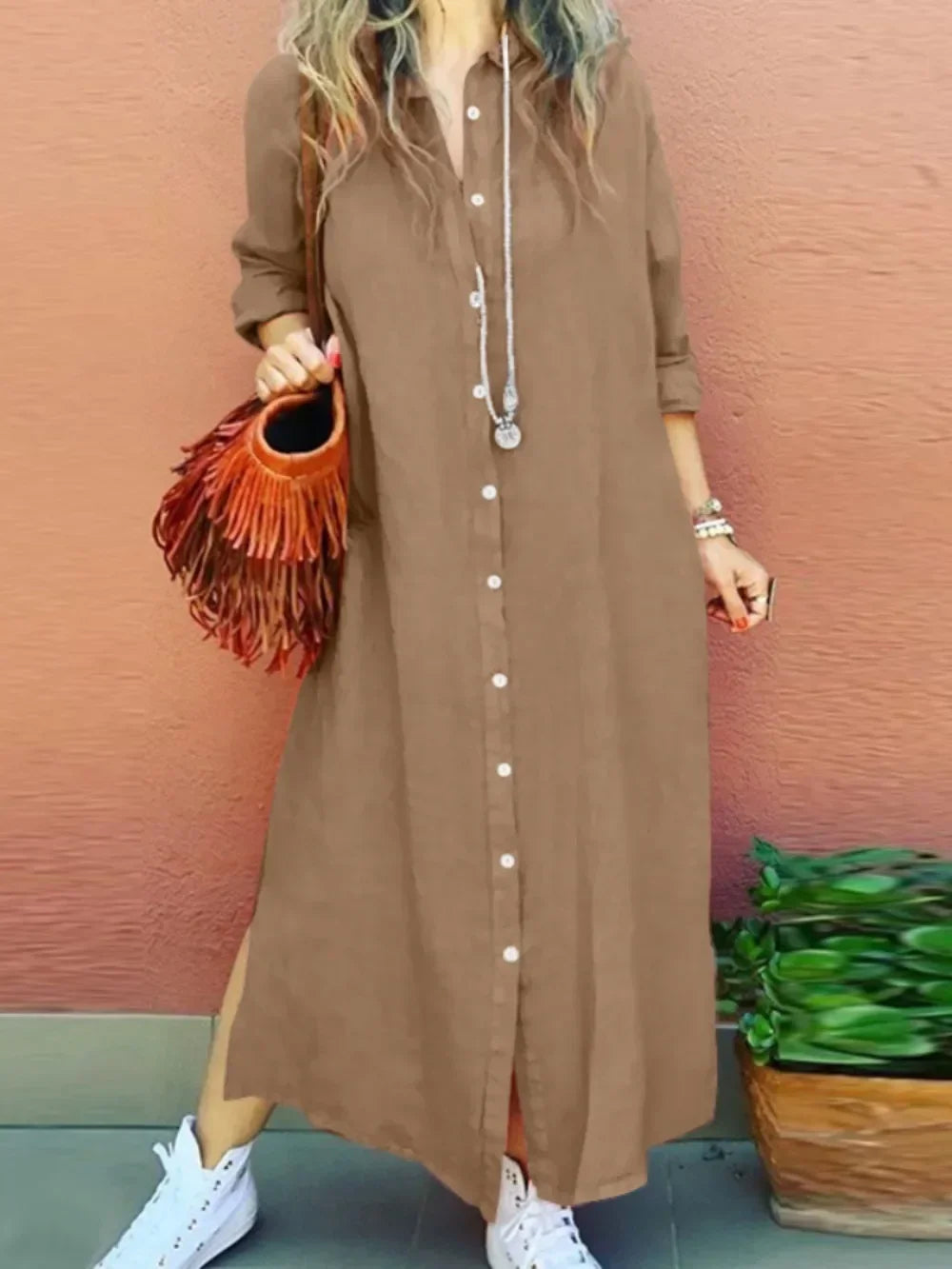 Muslim Women Dress Split Hem Shirt Long Dresses Lapels Long Sleeves Loose Cardigan Shirt Robe Ramadan Vestidos Largos Autumn