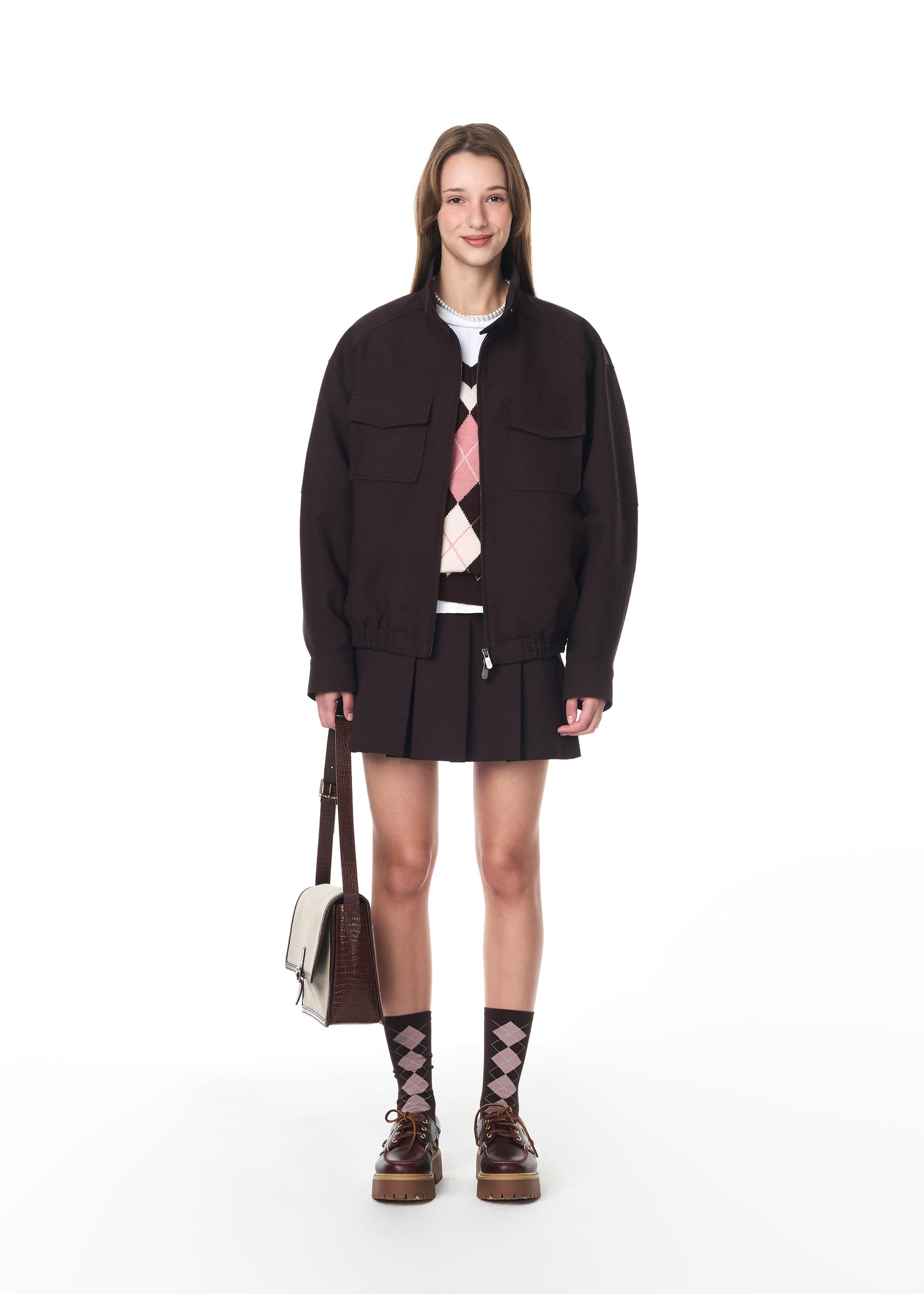Standard-thickness polyester fabric that is light yet structured, ideal for cooler autumn days without feeling heavy.