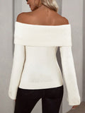 Off Shoulder Slim-Fit Sweater, Elegant Solid Color Long Sleeve Sweater For Fall & Spring, Women's Clothing
