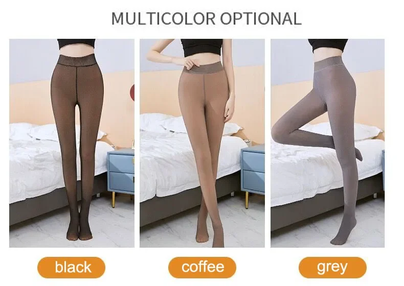 Thermal Stockings Woman Insulated Tights Legs Fake Translucent Warm Plush Lined Elastic Tights Black Sexy Stockings Winter Panty