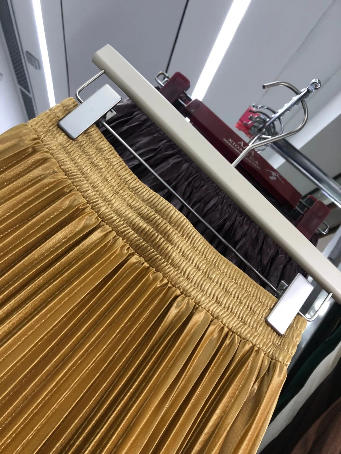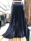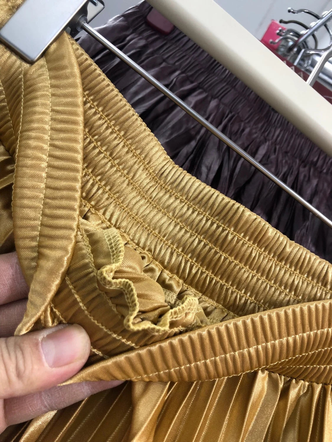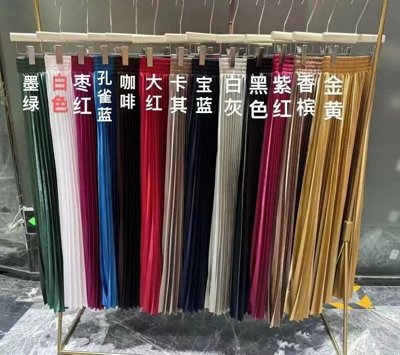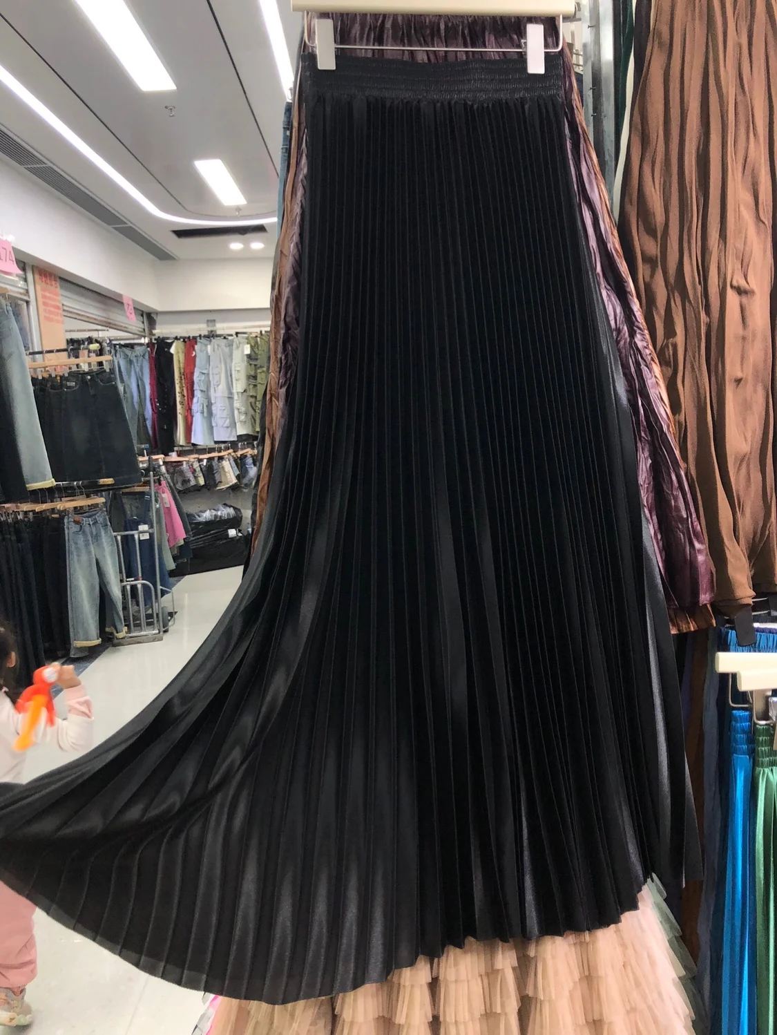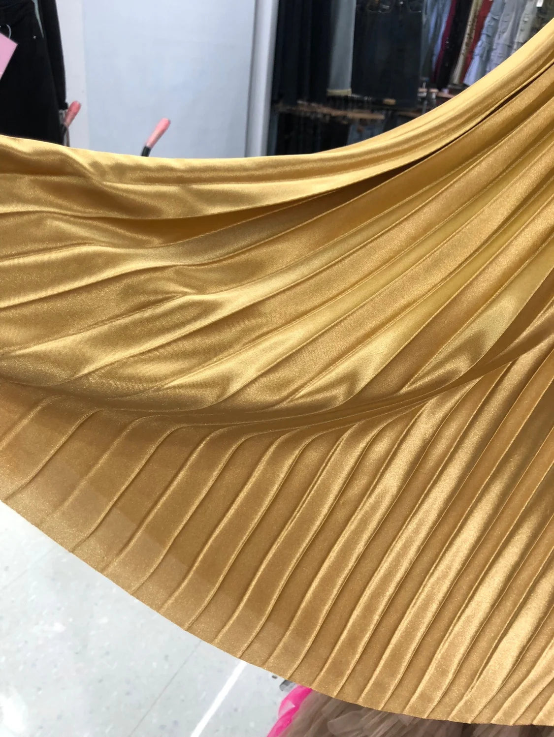 TingYiLi Women's 100cm Long Maxi Pleated Skirt Spring Summer Vintage High Waist Shiny Gold Silver Blue Green Red Straight Skirts