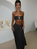 Weird Puss Elegant Women 2piece Set Sexy See Through Thin Tierred Y2K Seashell Tube Top+Wrapped Bandage Skirts Matching Clubwear