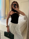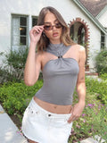 Weird Puss Metal Knot Tank Tops Women 2025 Summer Solid Pleated Sleeveless Stretch Simple Basic Streetwear Skinny Casual Vest