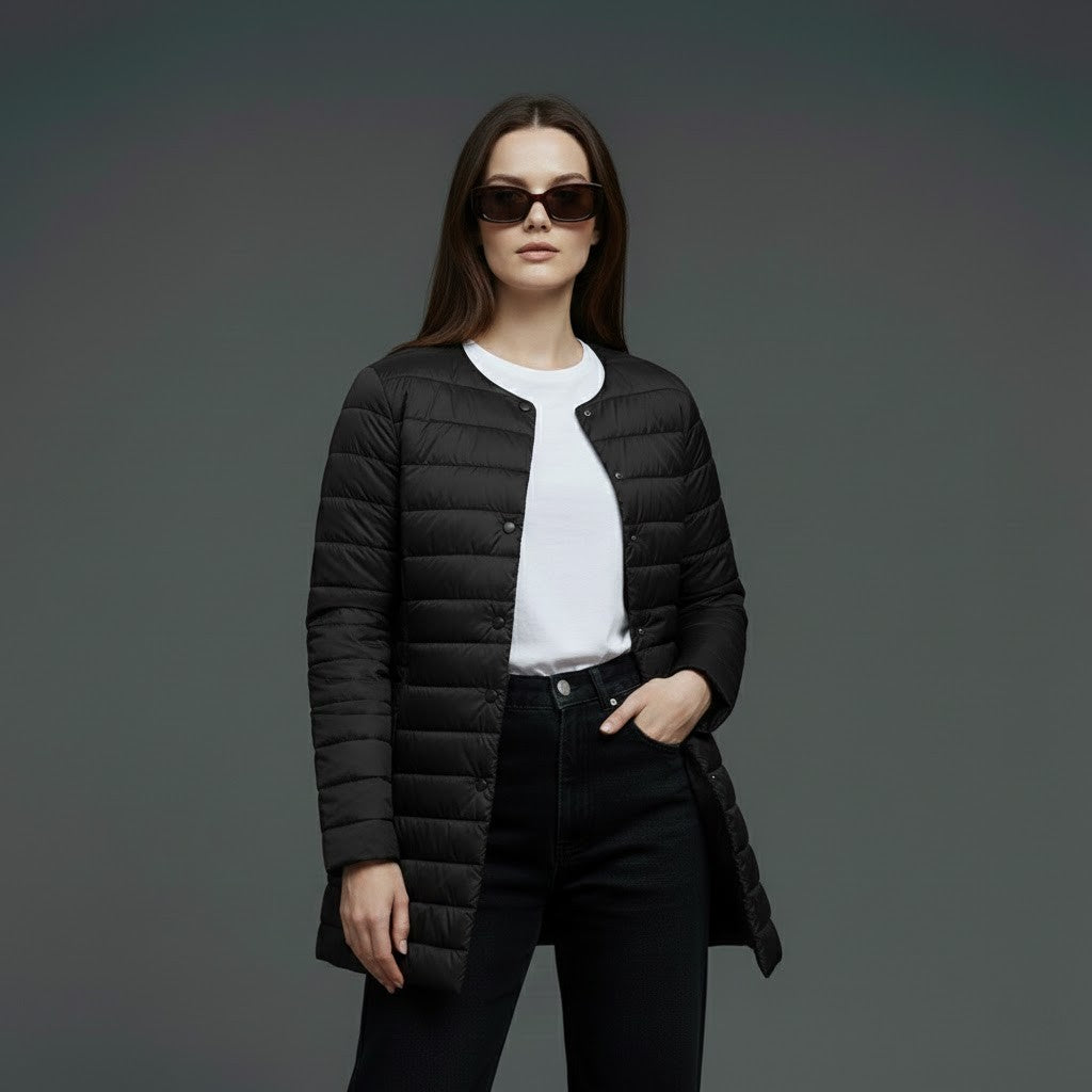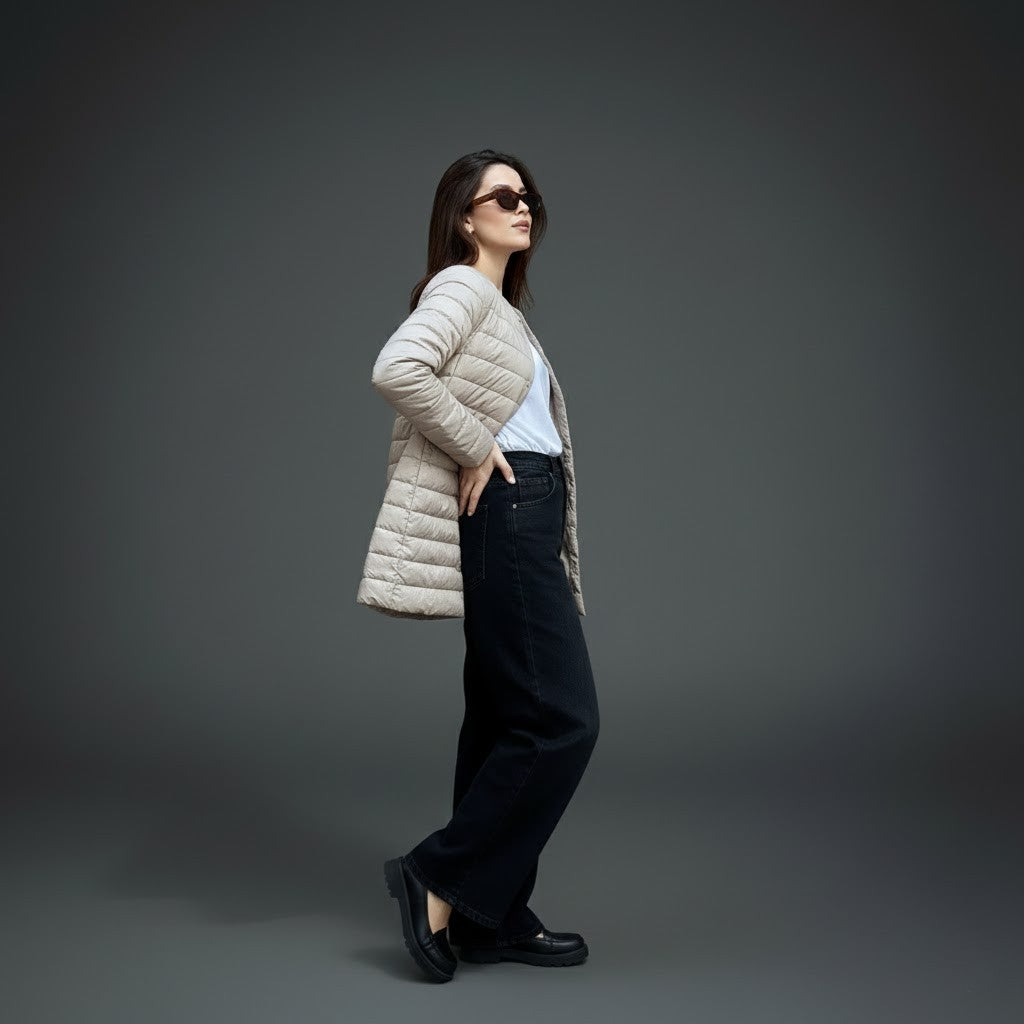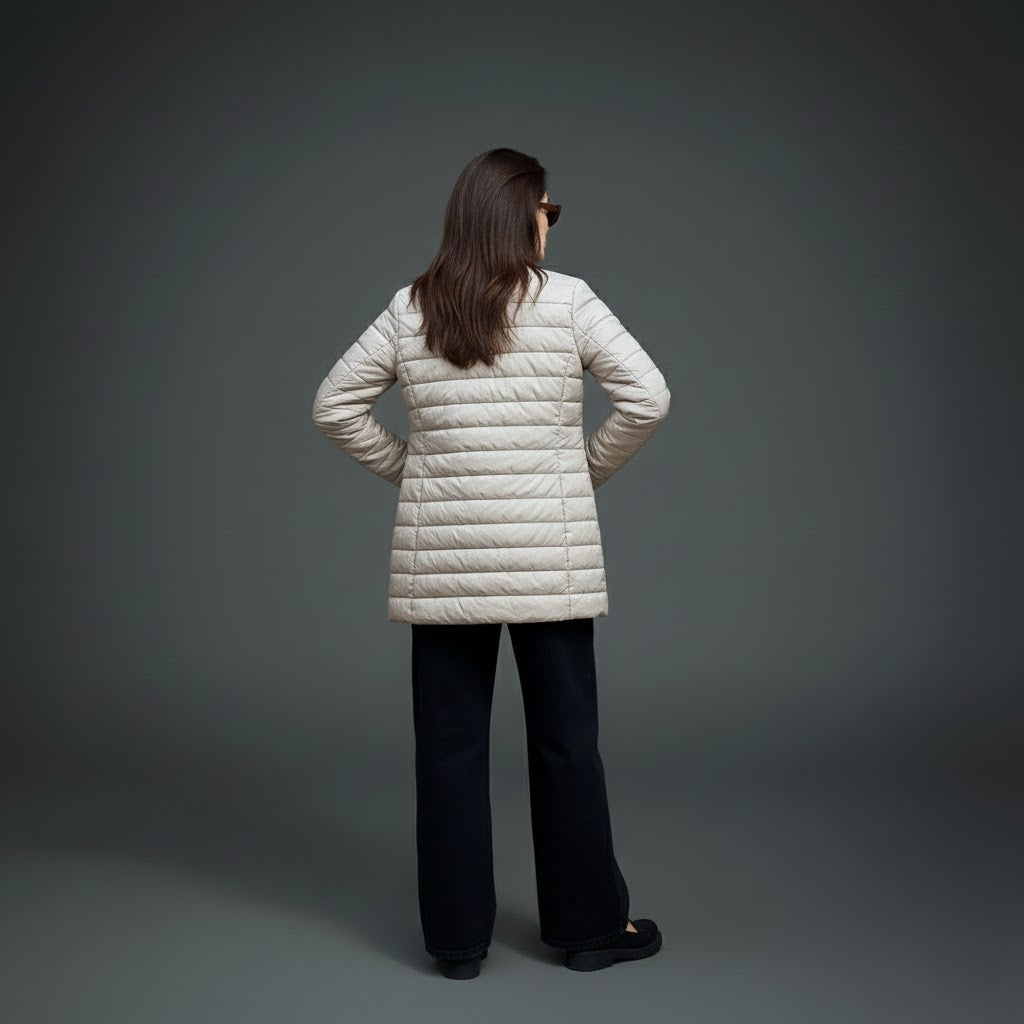 Ultra light long duck down coat that keeps you warm, polished, and comfortable without feeling bulky