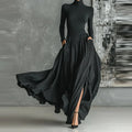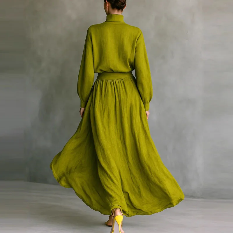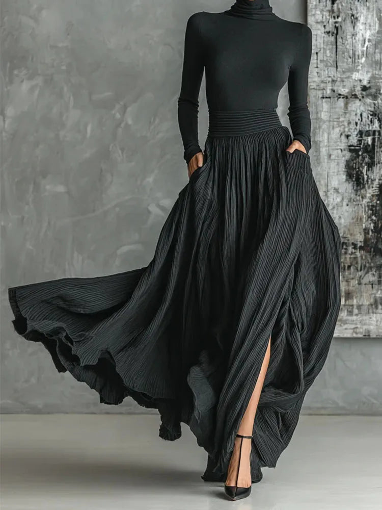 Women Casual Long Sleeve Pocket Solid Skirt Outfits Fashion Draped Slim 2Pc Suits Elegant Turtleneck Pullover & Long Skirt Set
