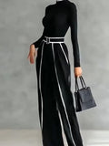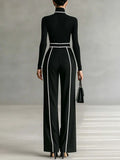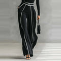 Women Fashion Color Blocking Outfits Casual Pocket Commuting Loose 2Pc Set Elegant Stand Collar Long Sleeve Top + Long Pant Suit