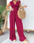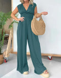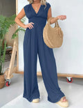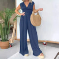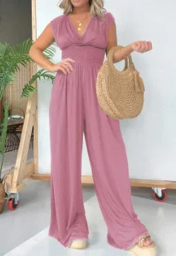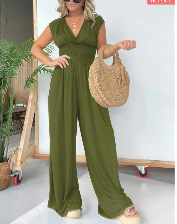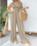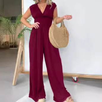 Women One Piece Solid Jumpsuits Sleeveless V Neck High Waist Rompers Y2k Wide Leg Long Pants Overalls Loose Casual Elegant