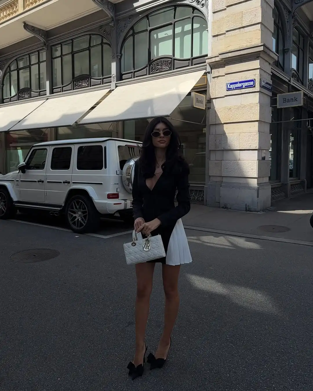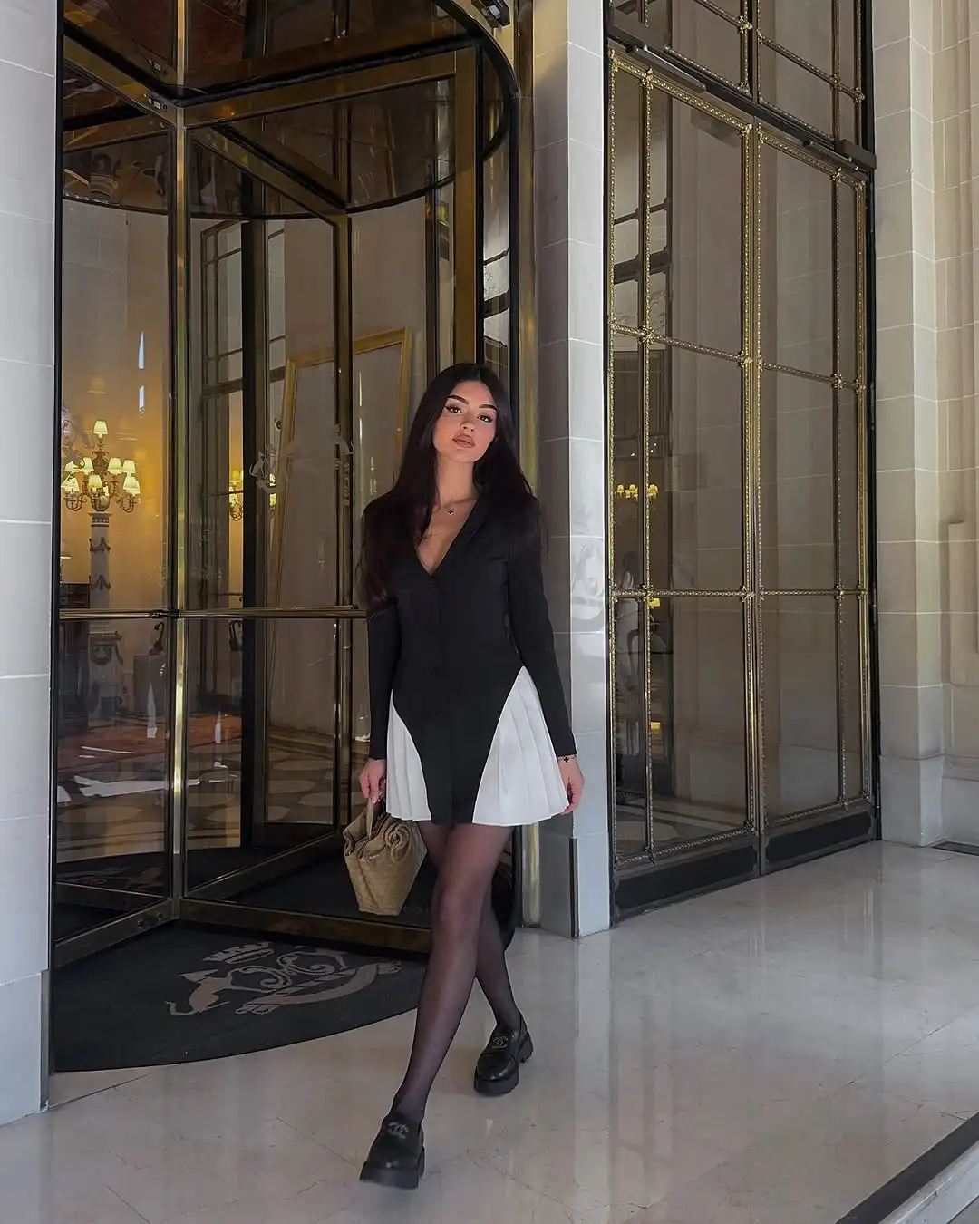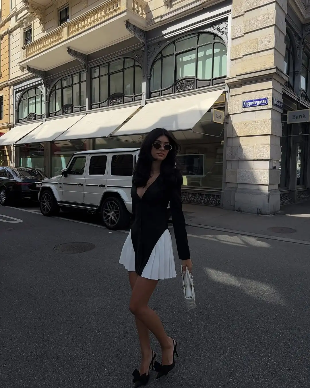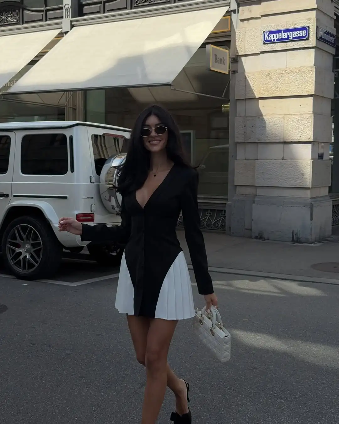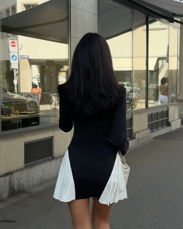 Model Number: Women Patchwork A-line Pleated Mini Dress