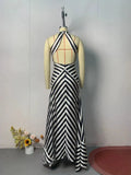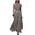 Women Striped Sleeveless Dress Backless A Line Elegant Long Dresses Halterneck Spliced Casual Vestidos Summer Beach 2025