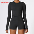 Women Yoga T-shirts Solid Sports Top Long Sleeve Gym Workout Running Shirts Sexy Exposed Navel Quick Dry Fitness Gym Sport Wear