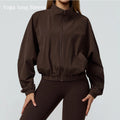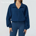 Women Zipper and Pockets Yoga Long Sleeve Gym Fitness Jacket Female Running Workout Sports Tops Windproof Yoga Top Sportswear