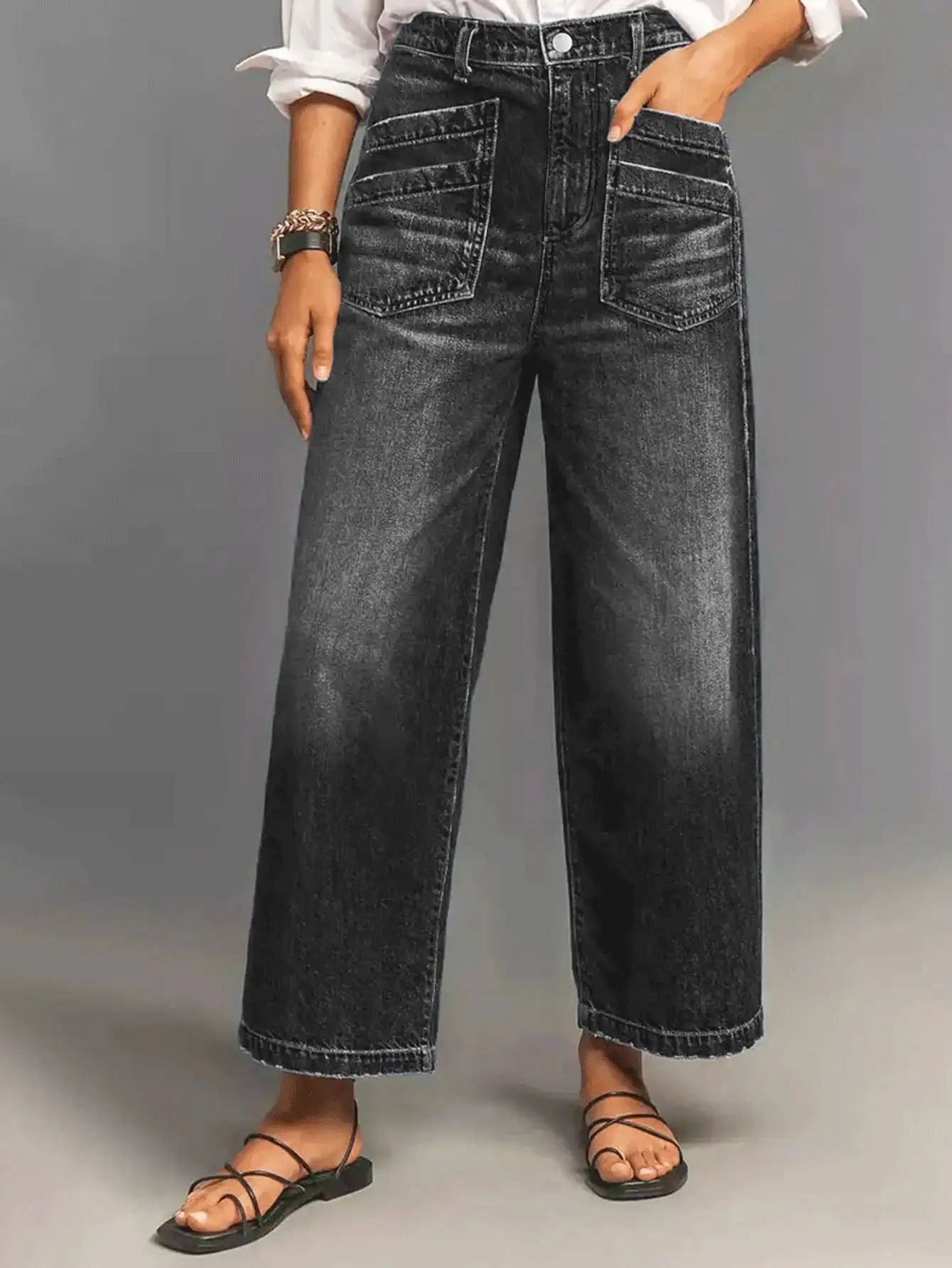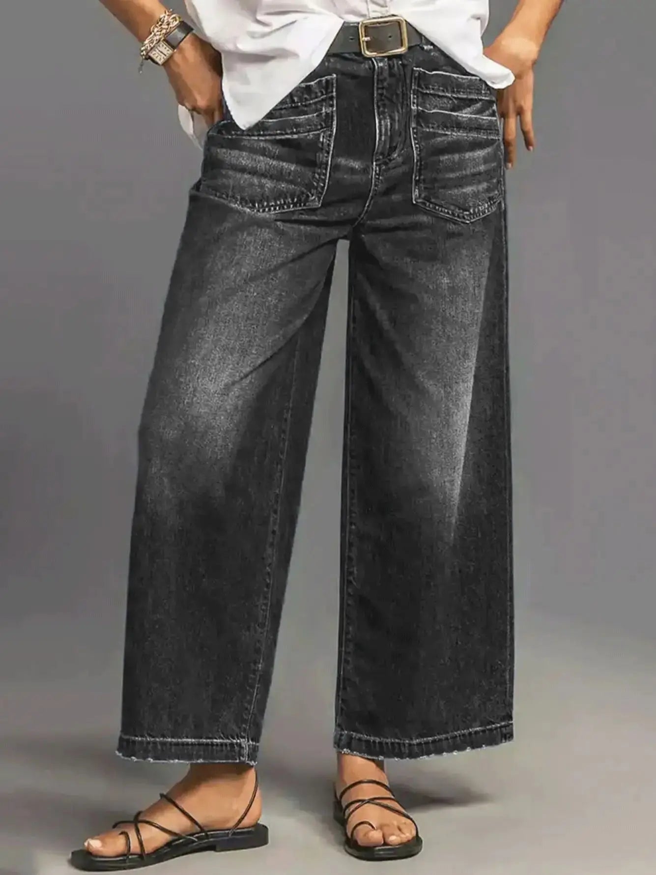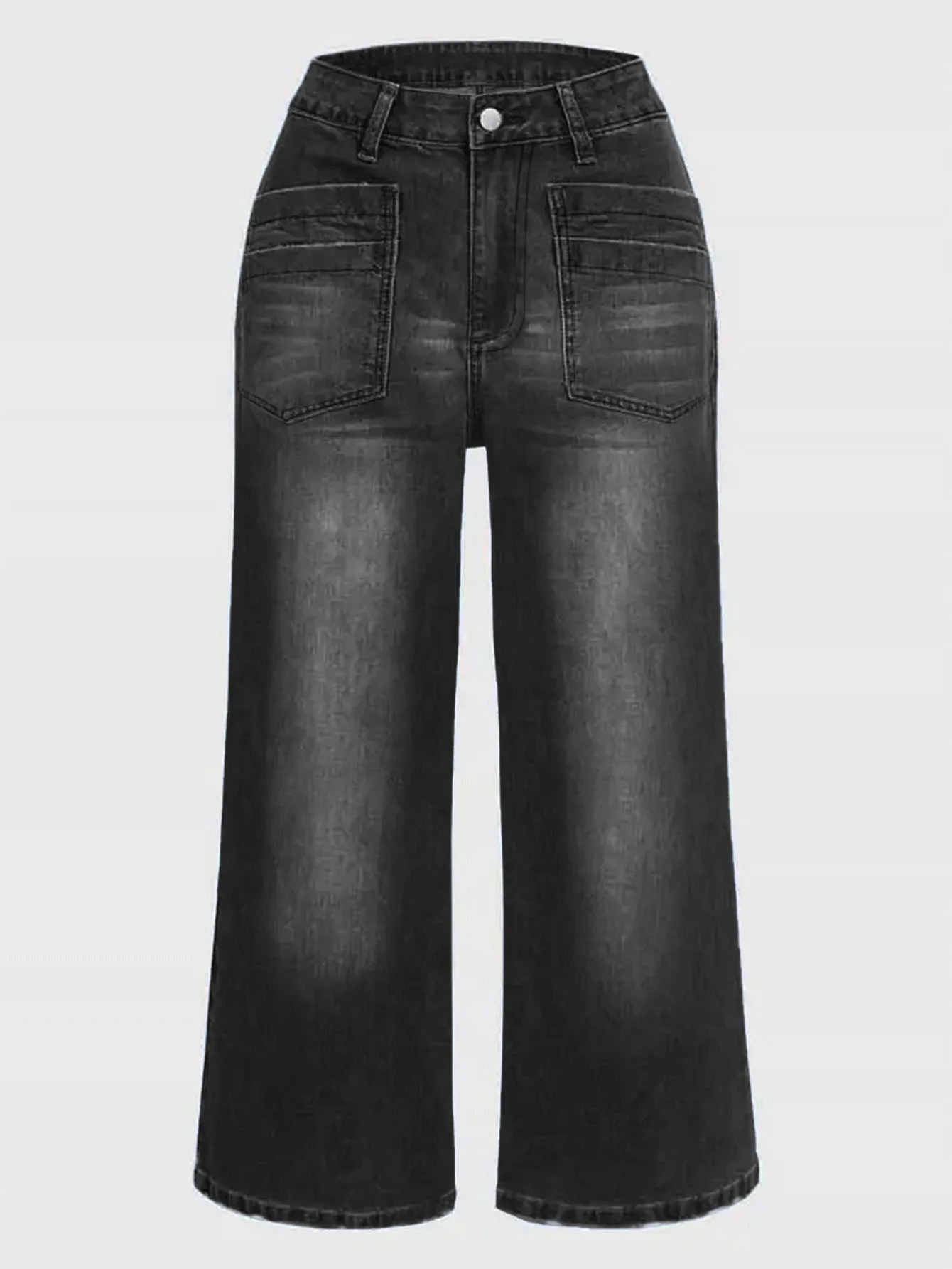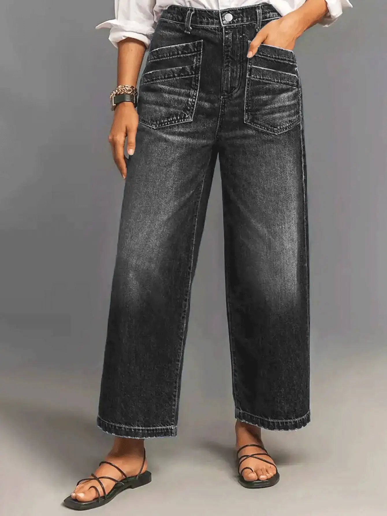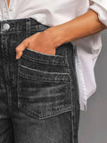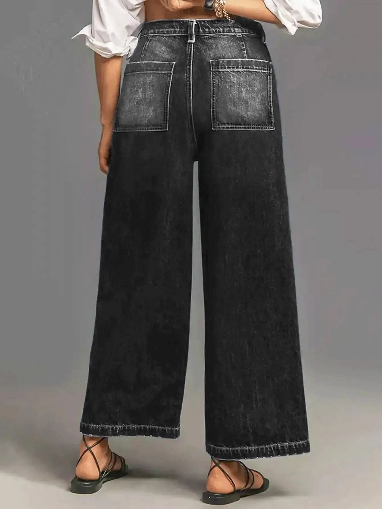 Women's Black Wide-Leg jeans Pants with Stylish Pockets - Trendy and Comfortable Fashion for Every Occasion