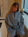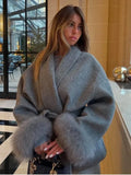 Women's Casual Solid Lapel Lace Up Woolen Coats Fashionable Single Breasted Pocket Loose Outwear 2025 Ladies High Street Jackets