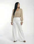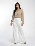 Flared long sleeves that add a feminine, refined touch while keeping the style modern and lightweight for spring and summer.