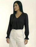 Elegant V-neckline and solid color design that pair effortlessly with tailored pants, skirts, or jeans for a clean, professional look.