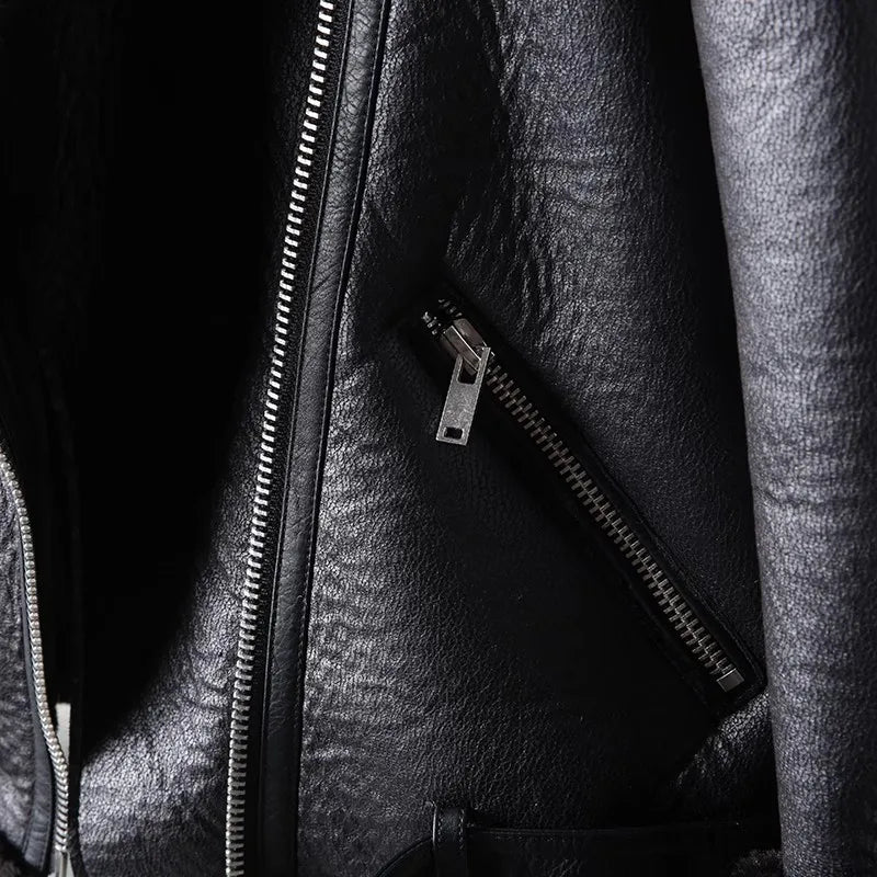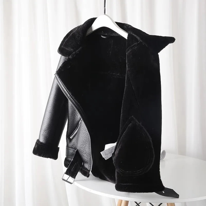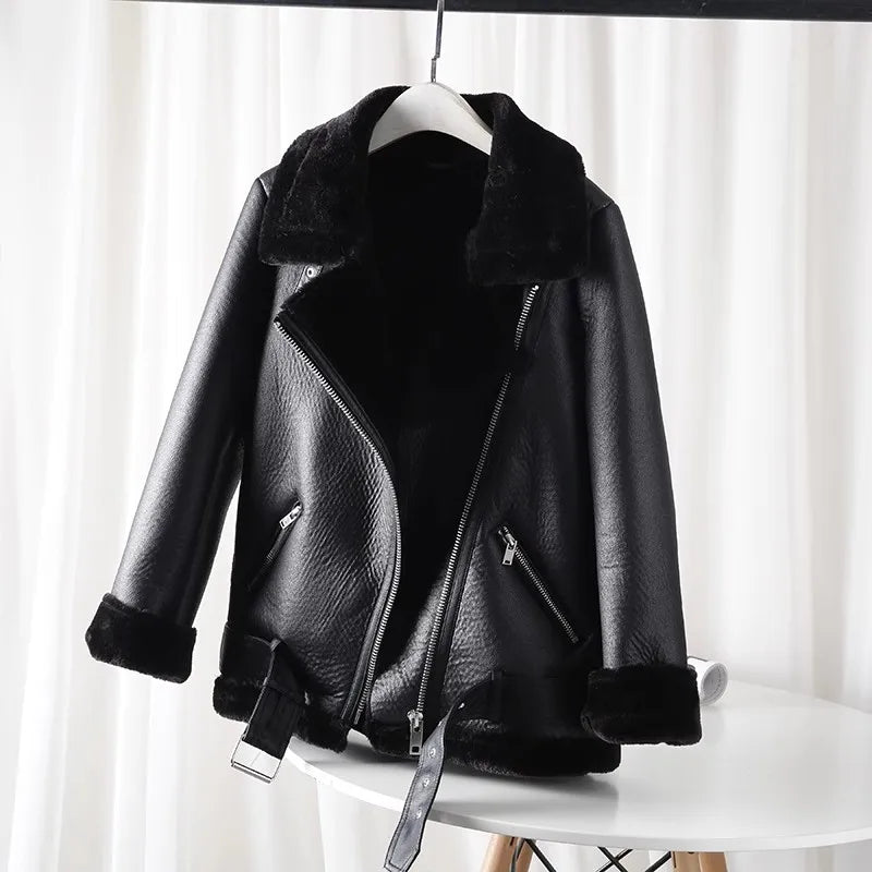 ZVRI Classic Women's 2024 Double Sided biker Jacket with Thick fur Warm black women's jacket